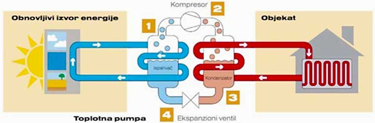 1. Iz obnovljivog izvora energija ulazi u isparivač pumpe;